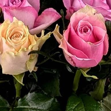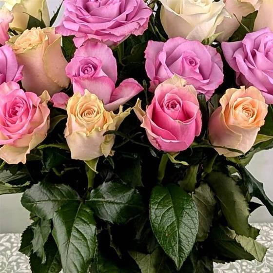 A glorious bunch of 20 50cm quality roses in soft pastel tones.