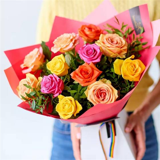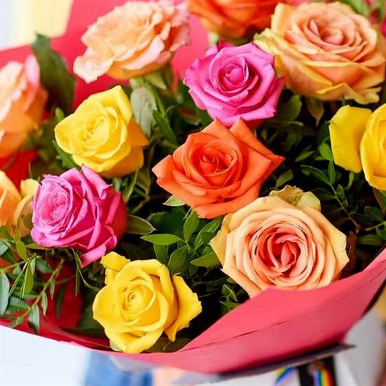 A quick rundown: a magnificent assortment of roses in beautiful colours. A romantic rainbow.