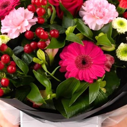 A gorgeous mix of romantic blooms, exquisitely arranged by a Vandella florist and safely tucked in a beautiful giftbox. It'll feature blooms in classic Valentine's colours including a Diamonte Red Rose in the centre,