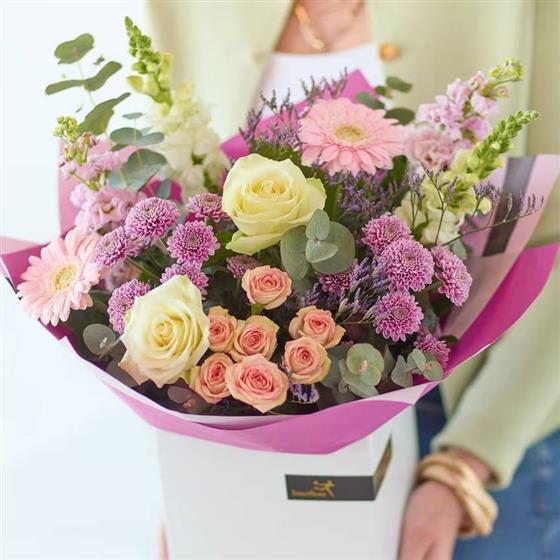 A bouquet of dreamy pastel flowers expertly arranged by a Vandella florist.