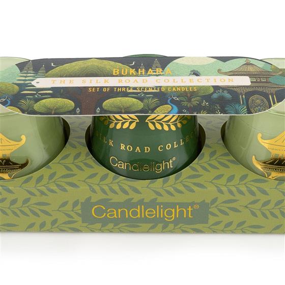 Immerse yourself in the ancient allure of Bukhara with our exquisite set of three scented candles from The Silk Road Collection