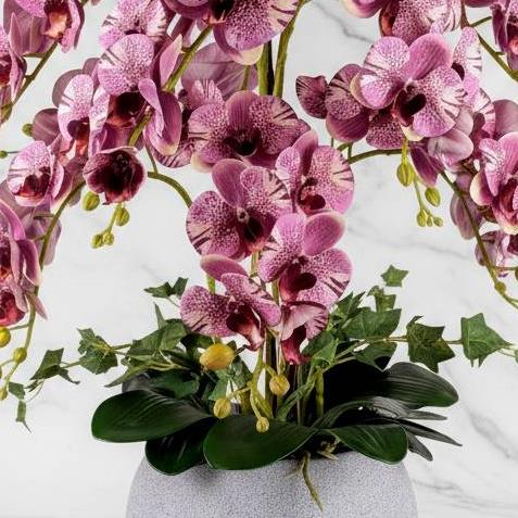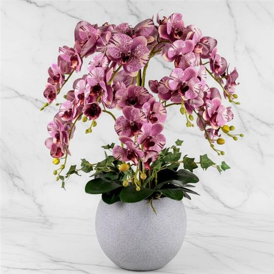 So you want something special well here it is. A real touch Faux Orchid 75cm high in tones of Mauve Marble. Ten long stems with lush leaves and ivy spikes.