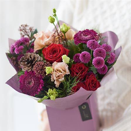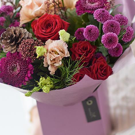 Choose a style to make it just right for them. This season gift boxes in our classic style will feature blooms in plum and burgundy colours. You might also see reds and greens with highlights of soft pink and copper.