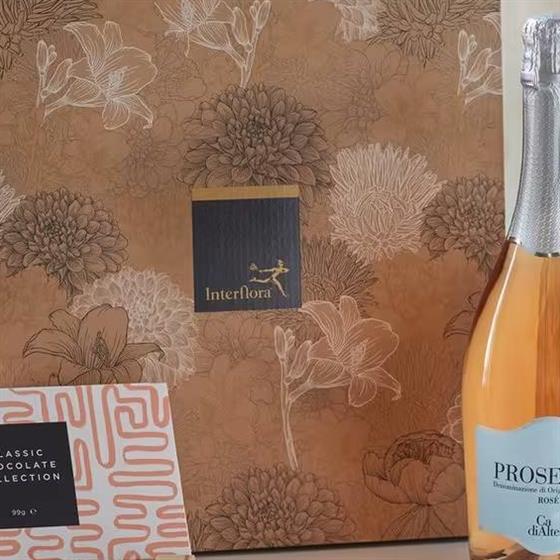 Featuring a 75cl bottle of sparkling Rosé Prosecco and a box of delicious chocolates in a presentation box.