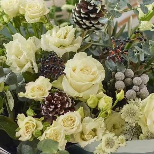 One of our bigger winter handcrafted bouquets, this will be a stunning selection of fresh and dried flowers (but no lilies) in soft winter shades.