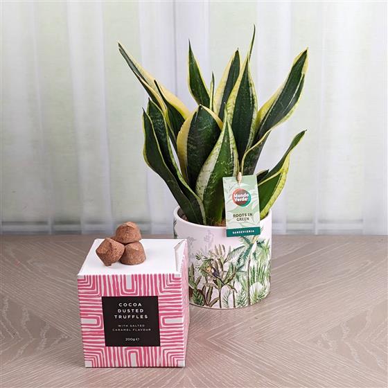 If a prize were available for the most easy to grow plant, snake plant would certainly be one Snake plant care is These plants can be neglected for weeks at a time it comes in a jungle print ceramiv vase and just to make it a little more special we have added a box of coco dusted truffle chocolates