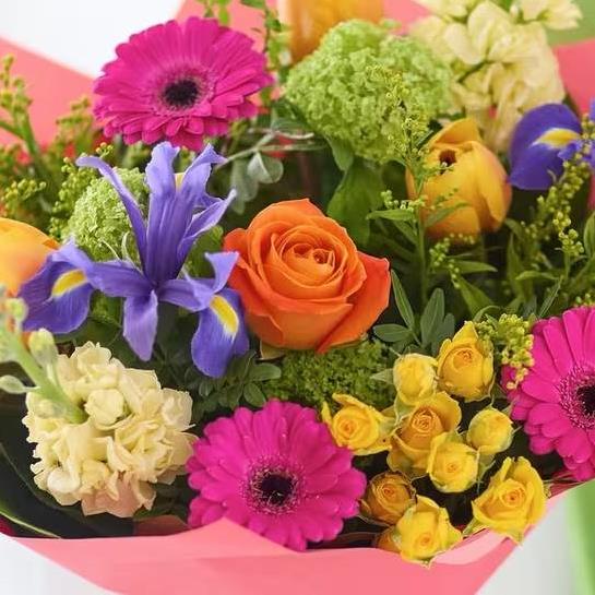 A quick rundown: a gorgeous bouquet of vibrant fresh flowers, without any lilies, expertly arranged by a Vandella florist.