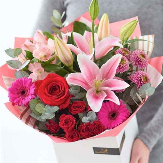 A sweet mix for your sweet Valentine. Crafted by a Vandella florist your bespoke bouquet will feature a mix of gorgeous fresh blooms in romantic hues – perfect for sweeping them off their feet. Expect classic Valentine's colours including cerise, burgundy and soft pink.