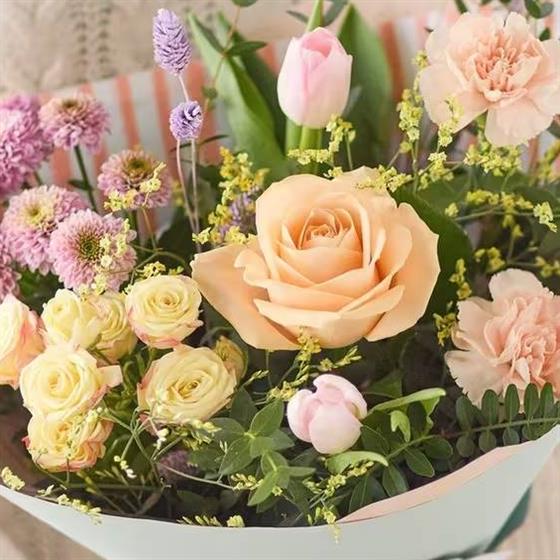 Colour & style: fresh and dried flowers and foliage in on trend soft, muted tones. Expect blooms in peach, lemon and lilac shades.